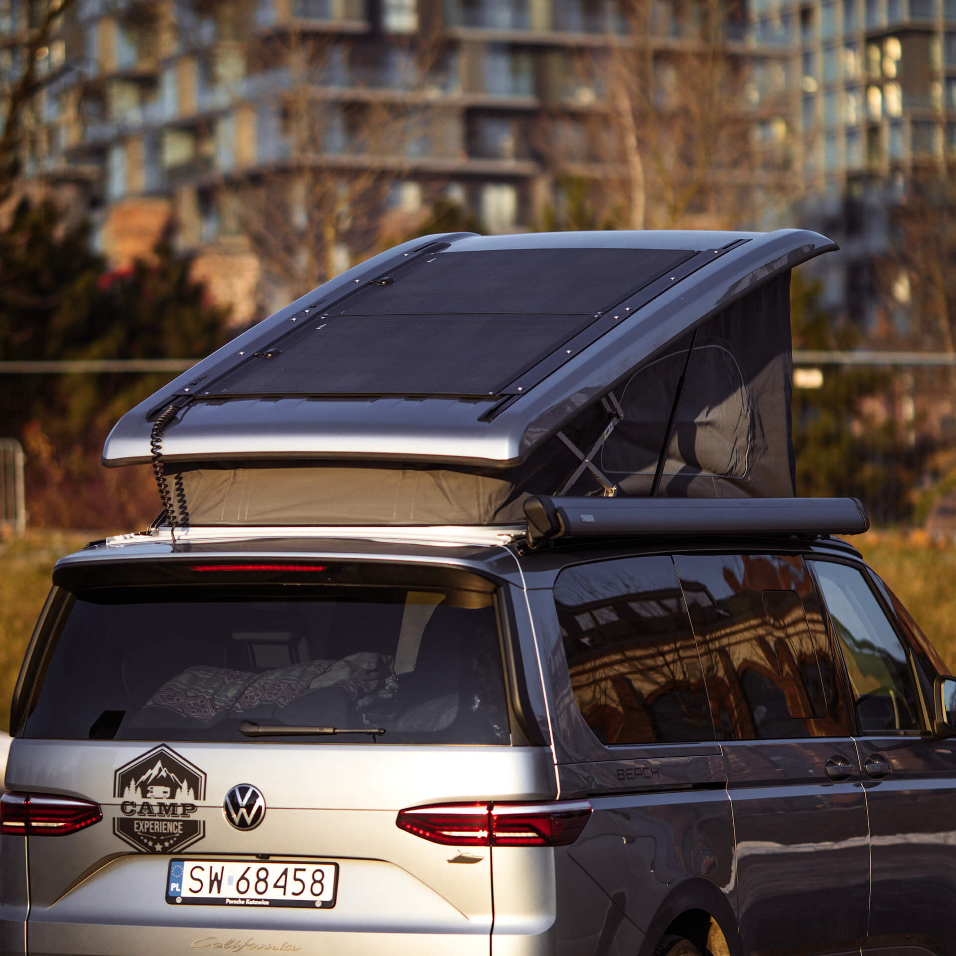 Panele solarne Flex na dachu VW California mogą zasilać wiele urządzeń osobistych i elementów wyposażenia kampera: